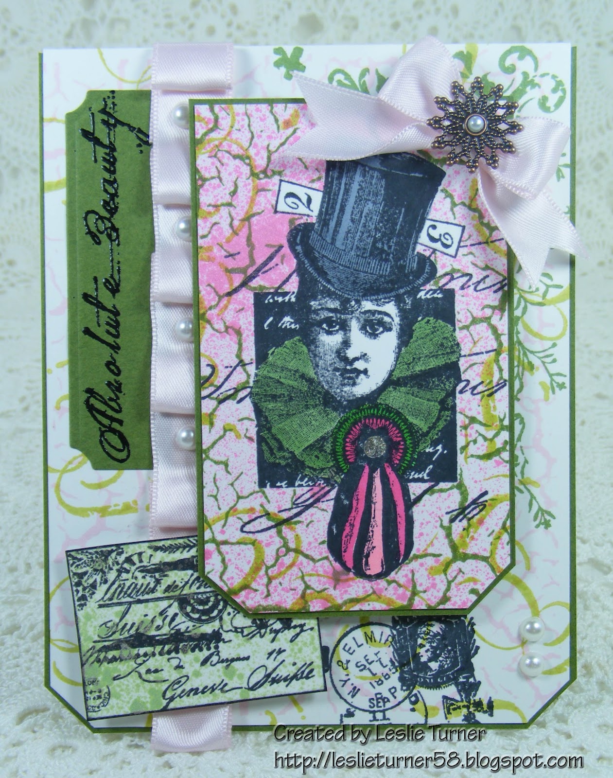 Description: Card created with Lynne Perrella's Paper Artsy "Pageant" images from Blockheads